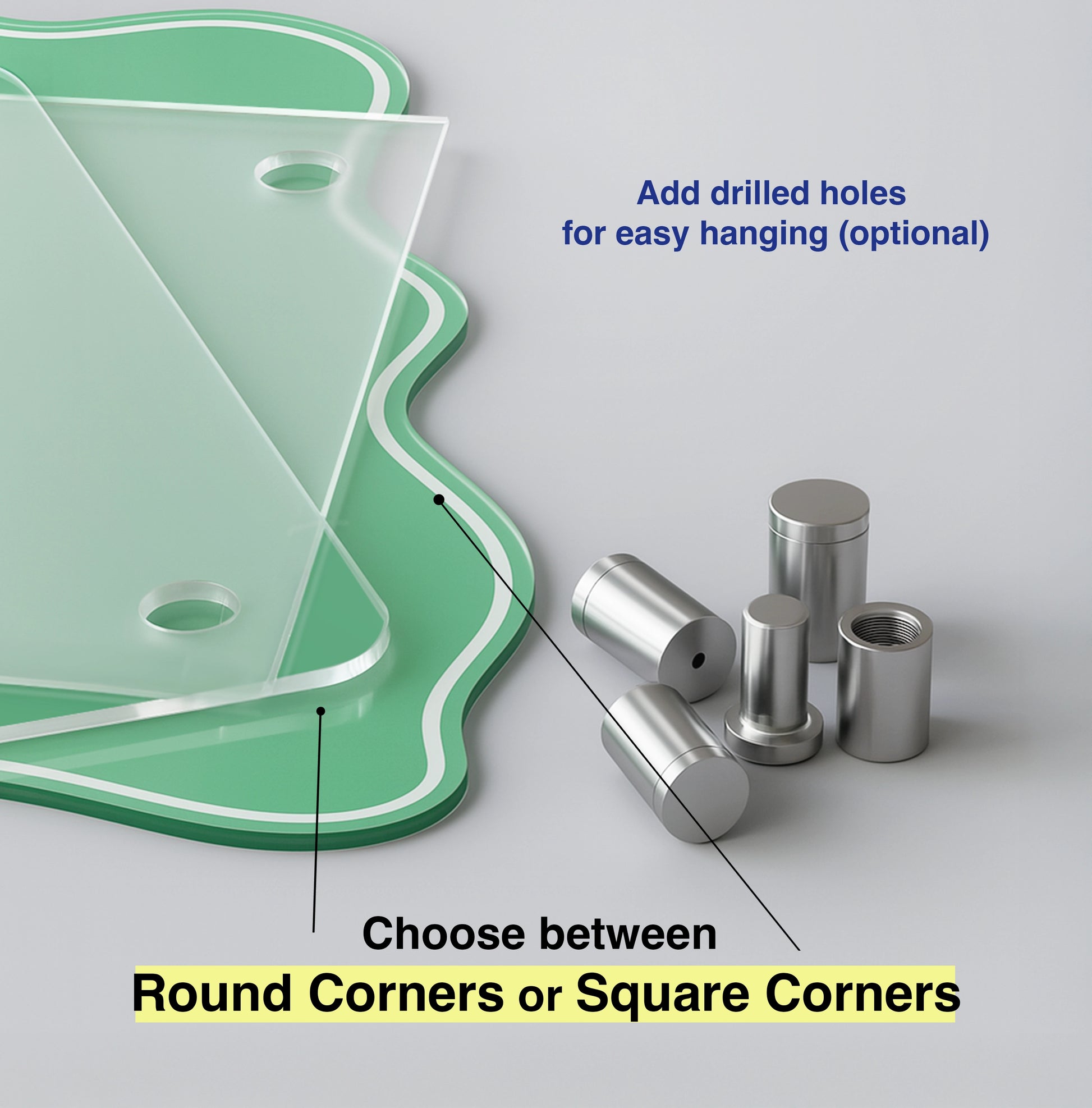 Mount your acrylic sign with ease using optionalpre-drilled holesin standard or custom placements—corners, center, or both.