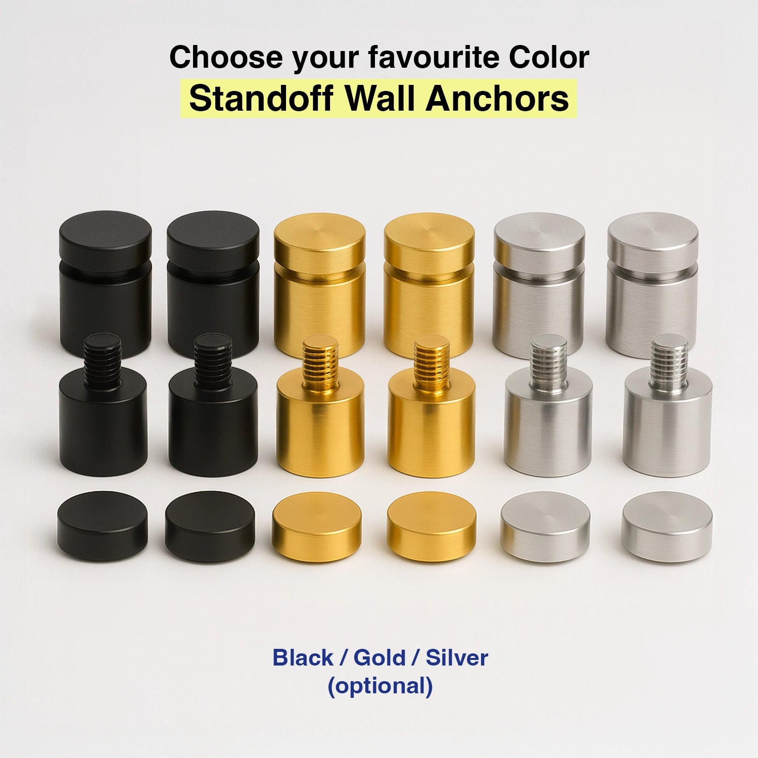 Use standoffs, screws, or adhesive depending on your surface. Drilled holes and standoffs offer a sleek, professional look—ideal for walls, doors, and offices.